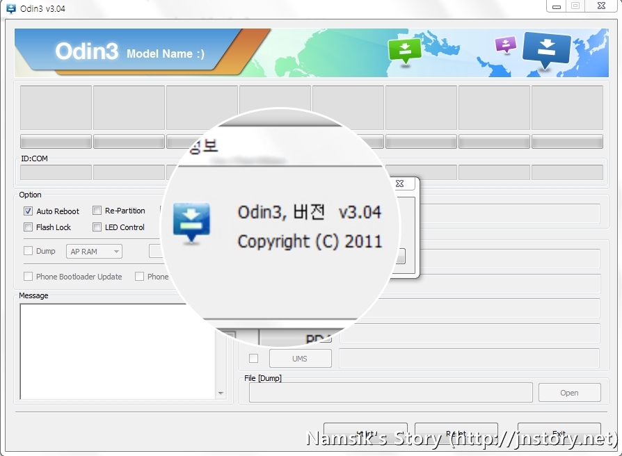 • 루팅/수정 펌웨어는 관련 카페에서 제공하며, Odin3 v3.04는 펌웨어를 적용하는 툴입니다.