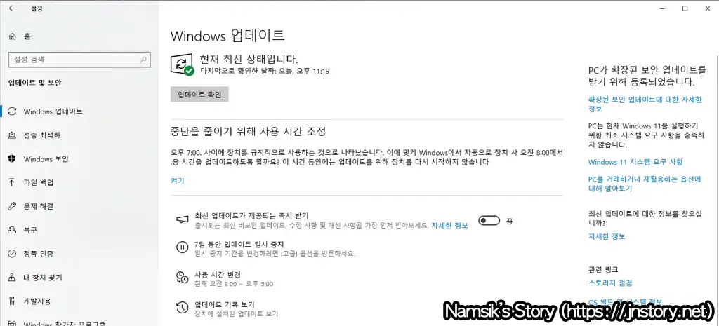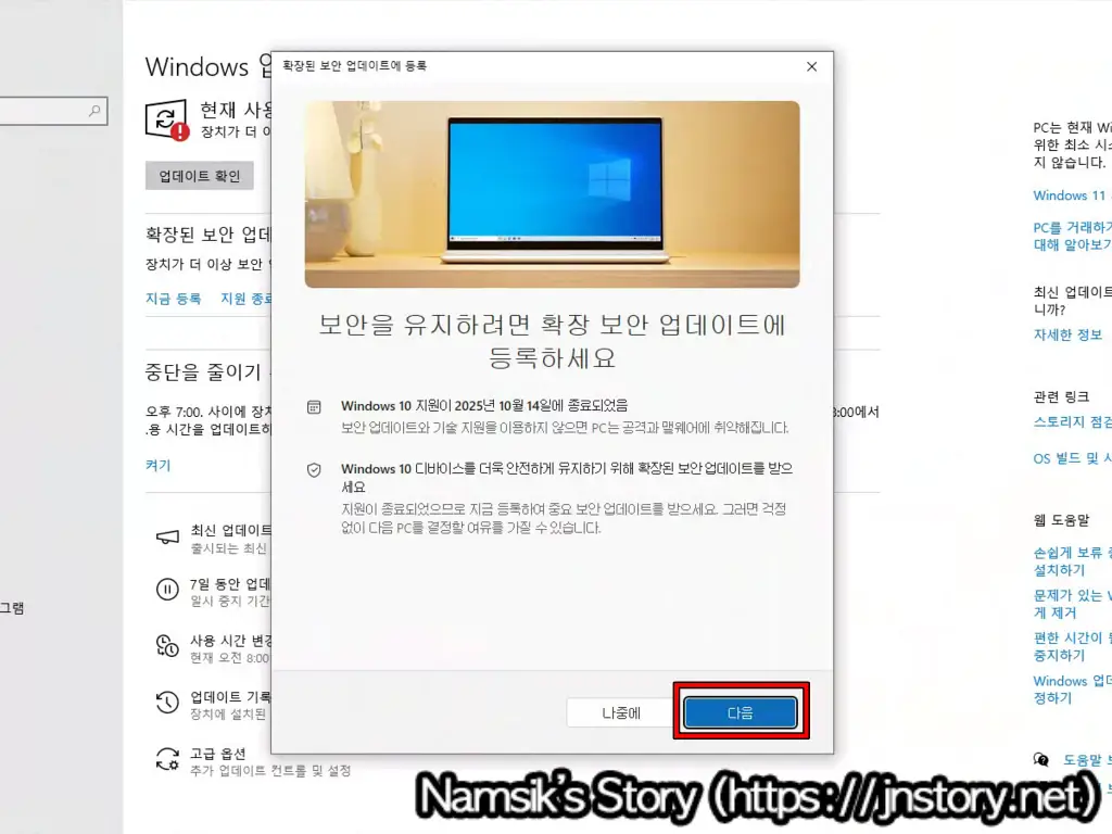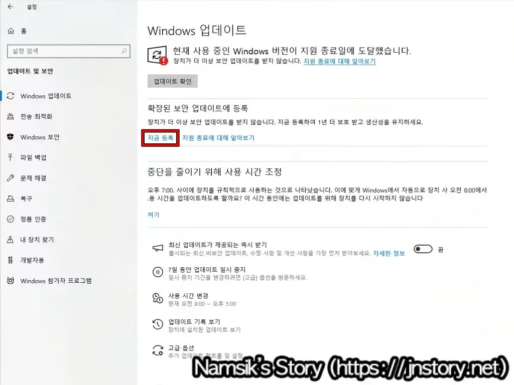Windows 10 보안 업데이트 연장 방법