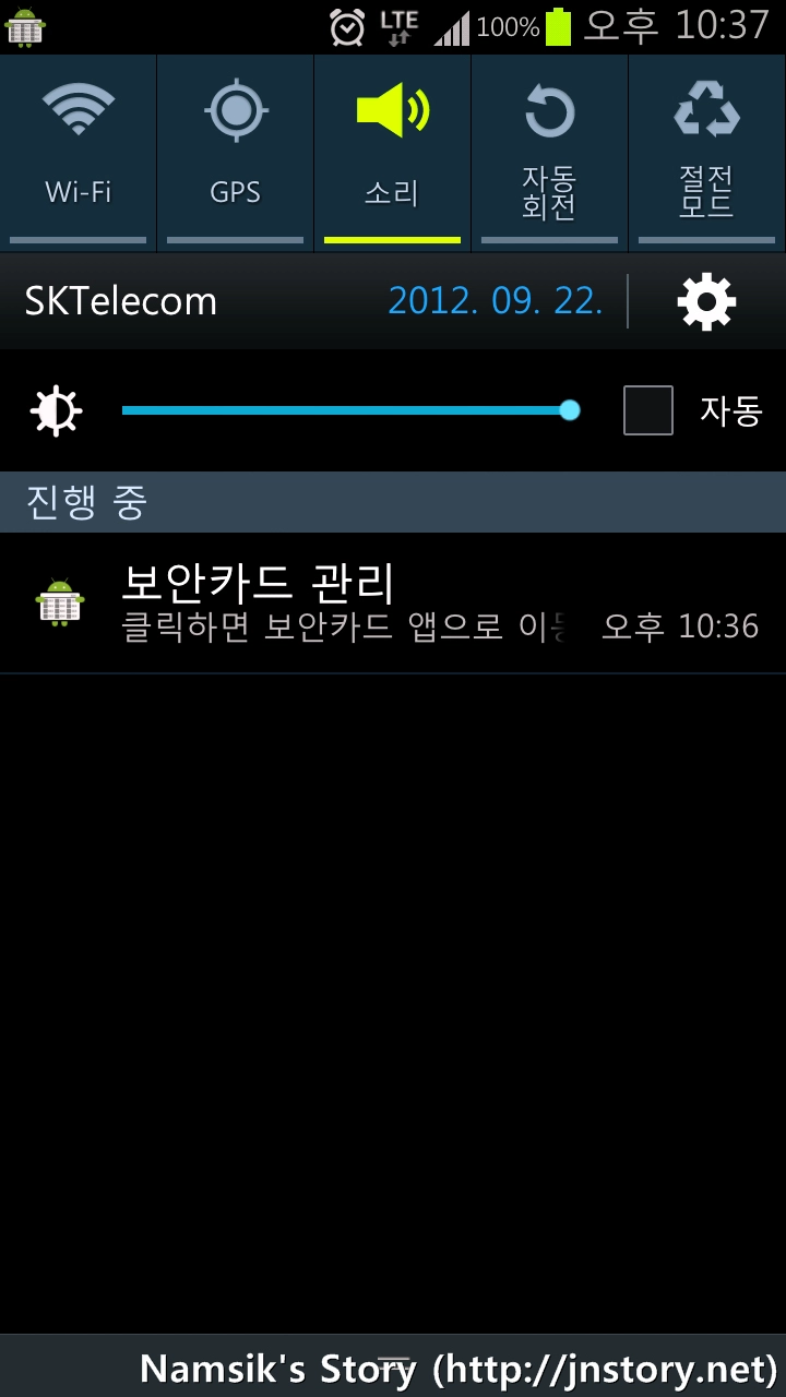 보안카드 관리 애플리케이션은 보안카드와 은행통장을 관리할 수 있으며, 최대 등록개수에는 제한이 없습니다. 필자의 경우에는 2개의 은행의 보안카드와 4개의 통장을 저장하여 사용하고 있습니다. 참고로 보안카드 중 Namsik’s Story는 이 애플리케이션을 소개하기 위해서 임의로 등록한 보안카드임을 참고하시기 바랍니다.