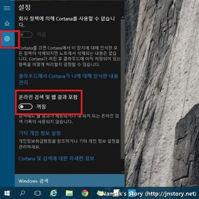 Windows 10의 웹 및 Windows 검색에서 웹검색만 끄는 방법
